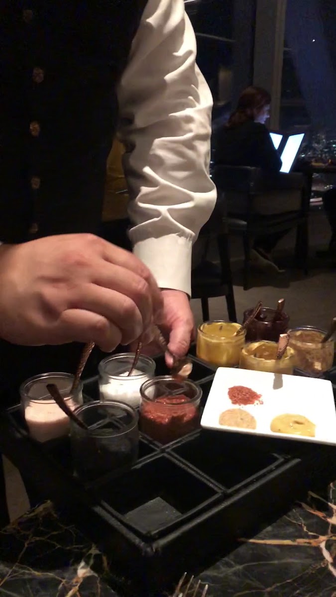 Came on a Saturday evening with no reservation, as a party of 7, were greeted welcoming and seated in a far room without a wait time. The view from the 70th floor (reached by 1-2 elevators) was amazing, as you can see all the lights in the city of Los Angeles. There was a decent amount of wait after ordering but it is worth it for the careful, flavorful craftsmanship that goes into these masterpieces. However, this gave us time to chat between friends so all was well. We ordered many appetizers and sides between us, some which include Mac & Cheese, asparagus, mashed potatoes, pomme frites, charcuterie and the prawns (However I am only picturing some). I ordered the New York Steak, Medium Rare, which included a chile that was not spicy, but added bites that paired well. I inquired about lobster options outside of the seafood tower and mac, and our server mentioned that for an additional charge I would be able to turn my meal into a surf and turf, which I went with. It was very rich and I did not struggle to enjoy it. My steak had a beautiful pink inside with a gorgeous, pleasing, brown outer-layer. I thoroughly enjoyed the texture and taste. We were checked on very frequently by our servers, which provided outstanding service with any questions inquiries, drink refills, and more. La Boucherie was quite expensive but that was not an issue for my party, as we came for the experience and to spend time together. Which was amazing by the way, definitely recommend!!